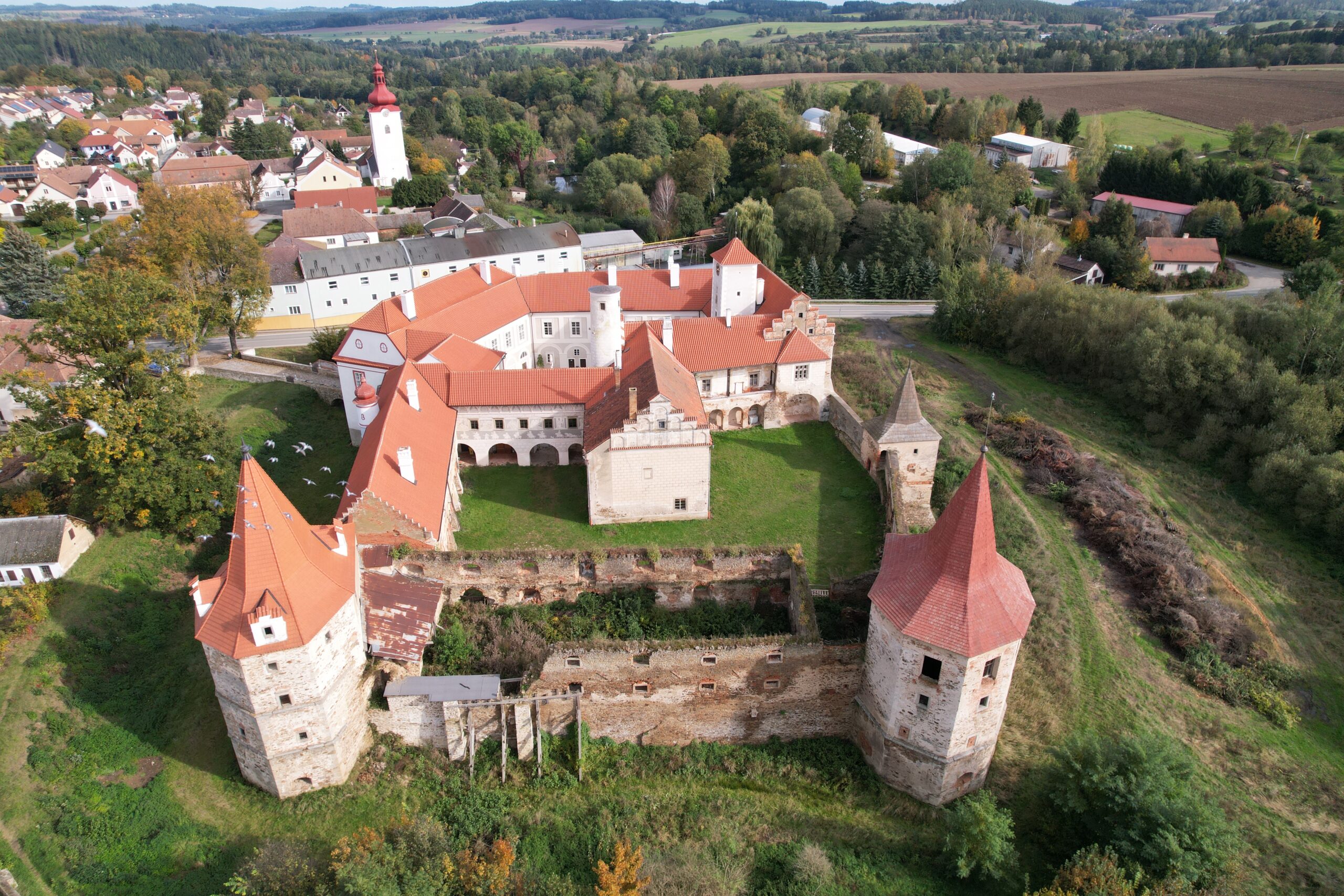 Díky místní naučné stezce se snadno seznámíte s nejvýznamnějšími památkami. Čtvercové náměstí stále zdobí několik domů se zachovalými barokními štíty, těžké časy připomene morový sloup z r. 1712 se sochou Panny Marie. Poledne ohlašují zvony barokního kostela sv. Máří Magdaleny s gotickými základy. Přes park s košatými stromy a kolem odsvěceného pozdně gotického kostela Božího Těla projdete do nejstarší části obce zvané Račana. Máte-li více času, vydáte se k božím mukám do polí. Vracíte se po břehu rybníků k dominantnímu zámku. Původní biskupský dvorec se rozrostl v gotický vodní hrad. V druhé polovině 16. století jej přestavěl rod Leskovců. Jediný renesanční zámek s kompletním opevněním na území republiky je národní kulturní památkou. Nenechte se zmýlit pozdější barokní fasádou směřující do hlavní silnice. Stačí vejít na první nádvoří a přivítají vás věže, arkády, zdobné štíty, ostění i sgrafita, nepřehlédnete ani osmiboké obranné věže. Od léta 2023 je zámek zpřístupněn veřejnosti. Moderní videomapping přiblíží poutavou formou historii zámku i okolí napříč stoletími. Pořádají se zde svatby a kulturní akce.